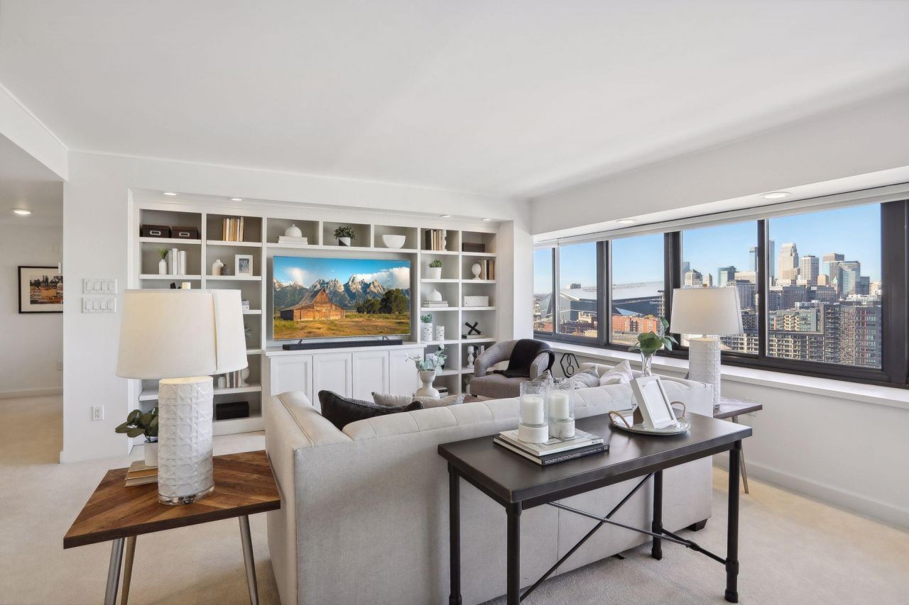 Sophisticated city living at Riverview Towers! This 20th floor location facing the Mississippi River, falls and city skyline feels like stepping into an art gallery - with bright natural light and fresh interior providing the backdrop for your furnishings and the amazing view. This unit was originally a 2 bedroom floorplan but was remodeled to increase the great room living space to fit living room and full dining area. The living space is open and connected to the kitchen which has lots of cabinetry and pantry storage. The living room also features a great wall of built-ins for a media center. There is a full bath on the hallway which leads to the primary suite. The bedroom includes a terrific wall unit with desk and storage. The ensuite bath is a 3/4 bath with walk-in shower. This floorplan also features a large storage closet within the unit. Riverview Towers is an established condo community where Community living is comprehensive; monthly HOA includes all utilities, basic cable, internet, heated indoor pool, whirlpool, fitness room, sauna, outdoor patio with gas grills, community rm w kitchen, package room, prof. mgmt. NEW HOA policy as of June 2025, association is permitting rentals (with restrictions), and pets (with restrictions.) Tucked away near the U of M law school, easy access to downtown, the University area, highways to anywhere you want to go.