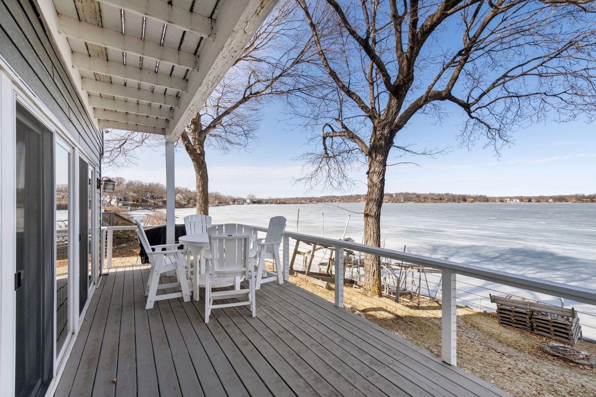 Turn-key & beautifully updated 2 story home set on a level lakeshore lot offering the perfect blend of comfort, views, and lakefront living. Move-in ready and can be purchased furnished for added convenience. Walls of windows and patio doors on all three levels fill the home with natural light and showcase stunning lake views throughout.The main floor offers a bright, open concept layout with a spacious living room with a cozy gas fireplace. Sliding glass doors lead directly to the lakeside deck, creating the perfect space for grilling, outdoor dining, and enjoying warm summer evenings by the water. The main floor features a spacious mudroom and welcoming entryway, along with a modern kitchen.The upper level offers three bedrooms plus a bunk room, providing plenty of space for family and guests. Two bathrooms are located on this level, including a full bath and a ¾ primary bath, both featuring dual sinks for added convenience.The lower level is designed for entertaining, featuring a family room and bar/entertainment area?perfect for game days, gatherings, and lake life fun. This level also includes an additional bedroom and a 3/4 bathroom, providing extra space for guests.With its sandy shoreline, level lot, incredible lake views, and multiple entertaining spaces, this property is an ideal year-round retreat or weekend getaway.