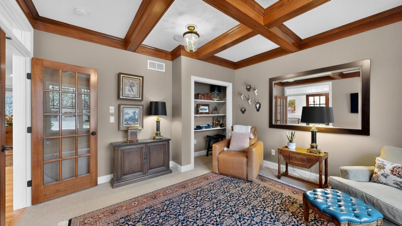 Impeccably appointed home set on a beautifully landscaped, tree-lined lot adjacent to the golf course at Rochester Golf & Country Club, yet tucked just below for added privacy. The open-concept main floor is both spacious and well-defined, featuring warm built-ins, hardwood birch floors, and inviting living spaces that flow seamlessly from room to room. The main-floor primary suite and laundry offer ease of living, while the kitchen showcases rich alder cabinetry, double ovens, a gas range, and a generous pantry. Enjoy two distinct outdoor retreats-a screened porch overlooking the wooded setting and a covered patio below, both perfect for dining and entertaining. The finished walkout lower level offers a spacious family room with a fireplace and a wet bar, extending the living space with direct access to the outdoors. Additional highlights include a finished wine room, abundant storage, and well-proportioned bedrooms filled with natural light. HOA provides lawn care and snow removal for carefree living.