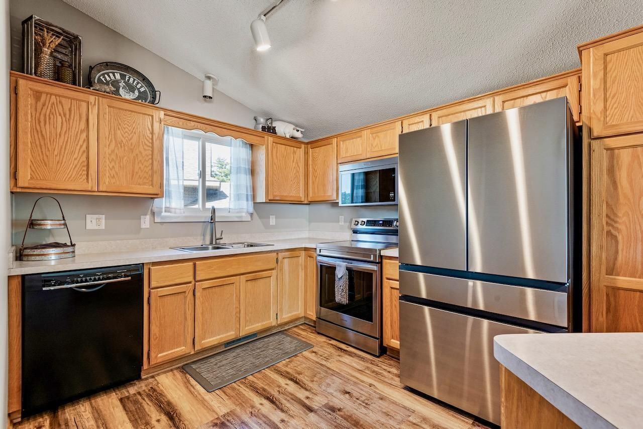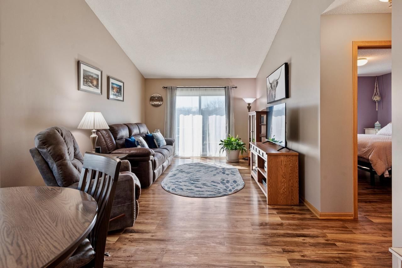 Spotless, meticulously maintained, and completely move-in ready! This two bedroom, two bathroom home offers over 1,500 finished square feet and a 2-car garage with sleek epoxy floors. Thoughtful updates throughout include Andersen windows, refreshed upper-level flooring, and newer stainless steel kitchen appliances. The upper level is bright and open, with vaulted ceilings and walks out to a 12x12 deck, with newer composite decking. The primary bathroom features a convenient walk-in shower and the primary bedroom is spacious and has a walk-in closet. Relax in your large family room on the lower level, with sliding doors that walkout to a patio, perfect for relaxing or entertaining. You'll have a couple less things to worry about with the association-maintained lawn care and snow removal, giving you more time to take advantage of nearby lakes, shopping, and quick freeway access. Tucked into a quiet cul-de-sac, this home truly shines with pride of ownership from top to bottom!
