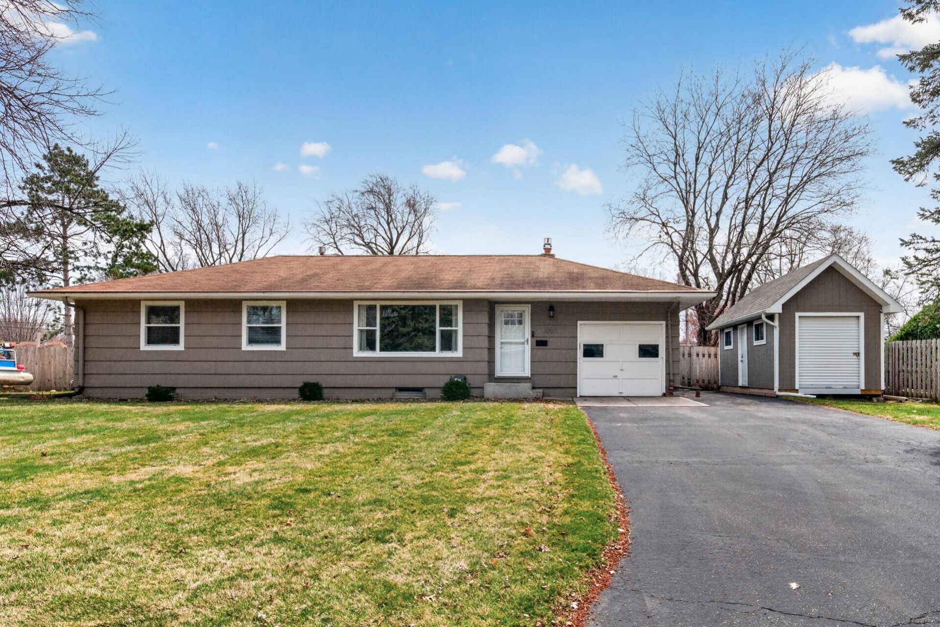 Welcome to this very well-maintained one-story home in a desirable Brooklyn Park neighborhood, with the current sellers being only the second owners. Ideally located with easy freeway access and close to shopping, restaurants, and everyday conveniences. Step outside to an incredible backyard oasis featuring beautiful landscaping, a fully fenced flat yard with lush green grass, and a large patio complete with a built-in fire pit and pergola perfect for relaxing or entertaining. The property also offers an oversized one-car garage, a large driveway, and a spacious 10x20 storage shed with two loft areas, providing excellent additional storage. Inside, you'll find original light oak hardwood flooring, stunning brick accent walls in both the kitchen and lower level family room, and a large picture window that fills the main living room with natural light. Recessed lighting enhances both the main living room and lower level family room. The recently updated kitchen features granite countertops, stainless steel appliances, and a custom-built coffee bar. The main level offers three bedrooms and a full bathroom, while the lower level provides an expansive family room ideal for entertaining, complete with a gas-burning fireplace. You'll also find a 3/4 bathroom and a versatile flex room currently used as a workout space but easily adaptable as an office or additional living area. The spacious laundry room offers ample storage to meet your needs.